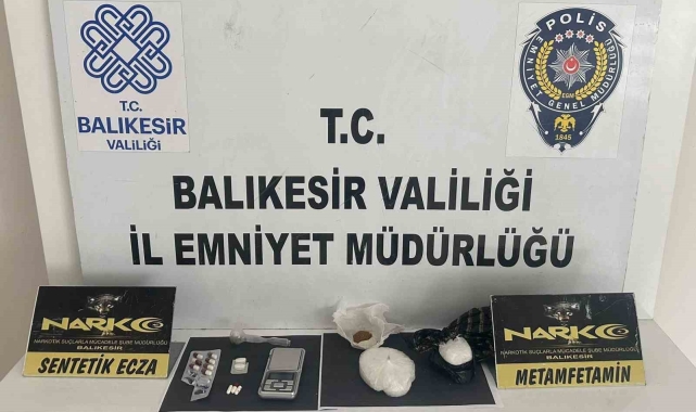 Balıkesir Narkotik Suçlarla Mücadele Şube Müdürlüğünce yapılan çalışmalar neticesinde şüphe üzerine durdurulan bir şahsın üzerinde ve bir ikamette yapılan aramalarda; 219 gram metamfetamin, 4.62 gram tütünle karıştırılmış esrar, 12 sentetik ecza hap, bir hassas terazi, bir uyuşturucu madde içiminde kullanılan cam aparat ele geçirildi. Operasyonda Y.B. (54), Ş.E. (36), A.K. (53) Y.Y. (41) gözaltına alındı. Şüpheliler hakkında uyuşturucu veya uyarıcı madde imal ve ticareti suçundan işlem yapıldı.
