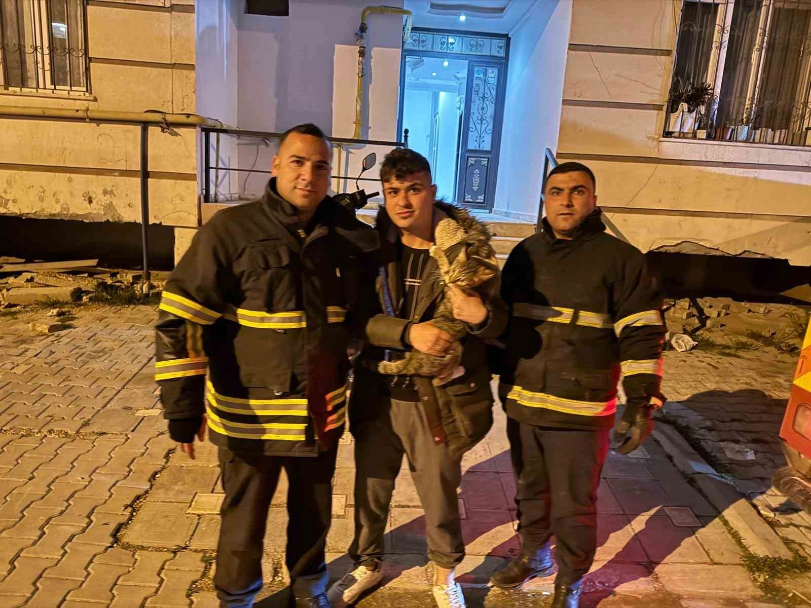 Hatay'ın Antakya ilçesinde balkonda mahsur kalan kediyi itfaiye ekipleri kurtardı.