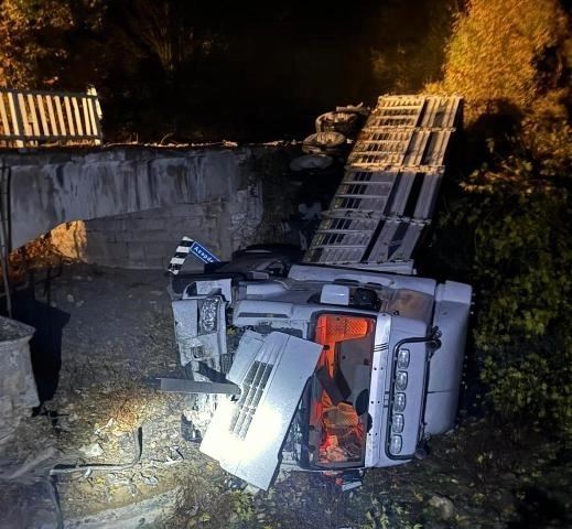 Balıkesir'in Balya ilçesinde tırın köprüden aşağıya uçtuğu kazada sürücü yaralandı.