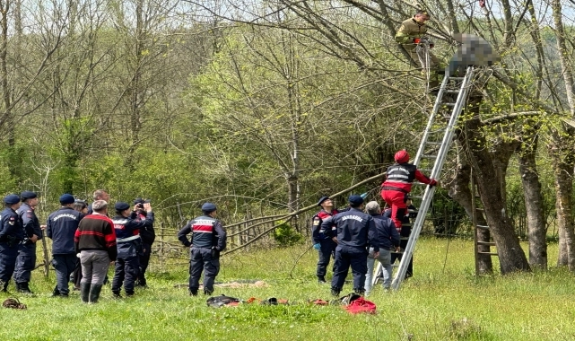 Merdiven yardımıyla ağaca çıkan görevliler, Erdoğan'ın yaşamını yitirdiğini belirledi.