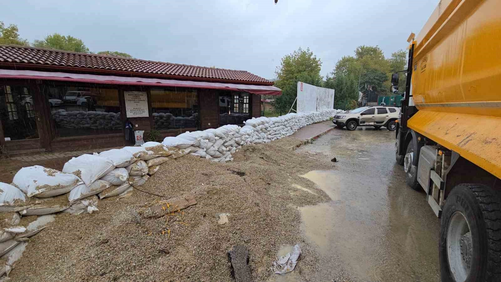 Kent merkezinde Yalı mevkiinden geçen ırmağın taşma riskine karşı alınan tedbirler kapsamında Devlet Su İşleri (DSİ) ekipleri ve belediye ekipleri bazı noktalarda kum torbalarıyla setler oluşturuyor.