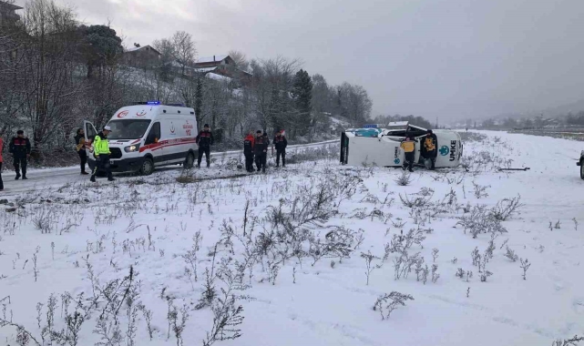 Bartın'da yardıma giden UMKE aracı buzlu yolda devrildi. Kazada 1 kişi yaralandı.