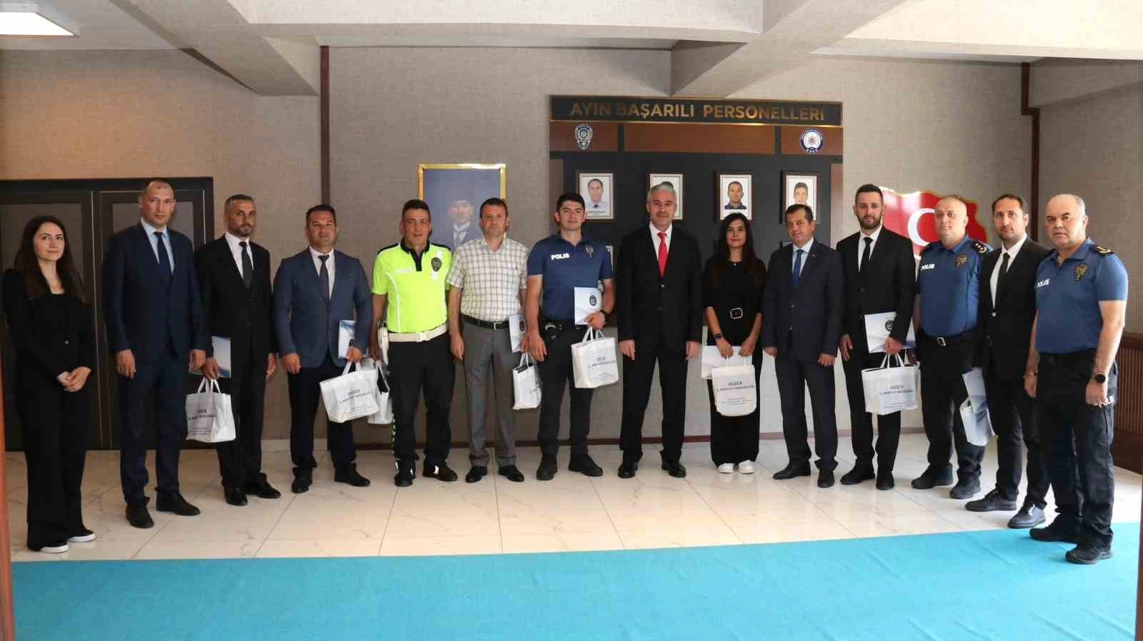 Düzce'de polis ekipleri il genelinde çalışmalarını aralıksız devam ettiriyor. Suç ve suç unsurlarının önüne geçmek, vatandaşların huzur ve sukunetini sağlamak için var güçleri ile çalışan polis ekipler de Emniyet Müdürlüğü tarafından ödüllendiriliyor. Her ay düzenli olarak personellere verilen ödüller çerçevesinde Mayıs ayında başarılı olan personellere de İl Emniyet Müdürü İbrahim Ergüder tarafından üstün başarı belgeleri verildi.
