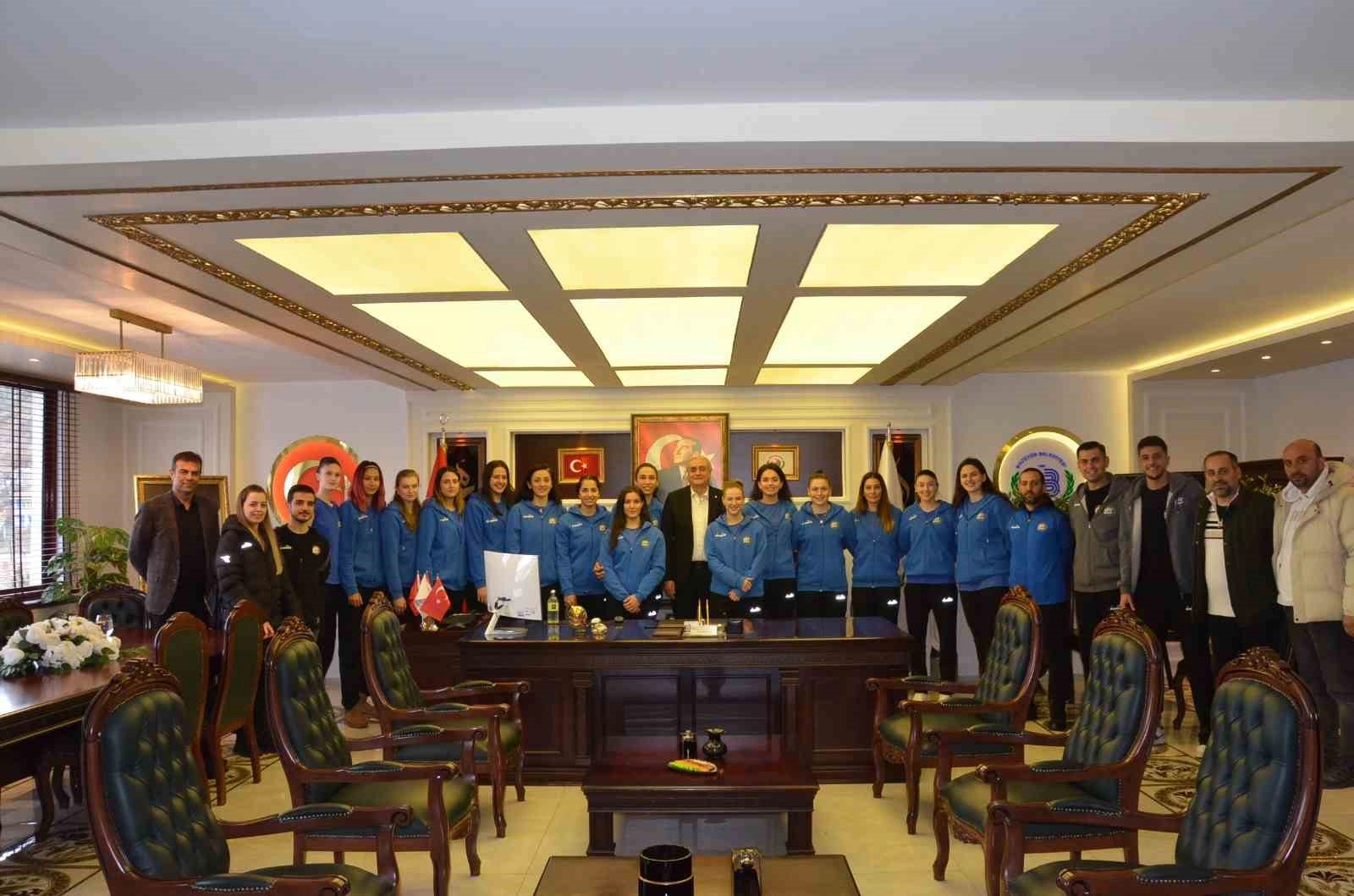 Türkiye Voleybol Federasyonu Kadınlar 2. Lig'inde grubunu 2. sırada tamamlayan Bozüyük Belediyesi Eğitim ve Spor Kulübü Voleybol Takımı ve teknik heyeti, 1. Lig'e yükselme çeyrek final maçları öncesinde Belediye Başkanı Mehmet Talat Bakkalcıoğlu ile bir araya geldi.