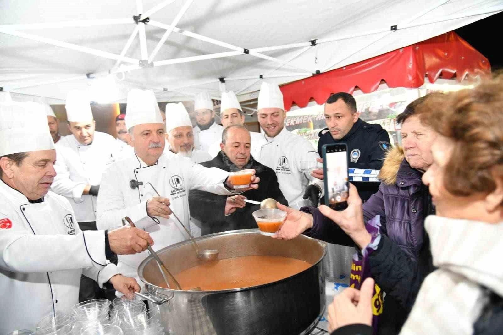Yunusemre Belediyesi, Magnesia Gastronomi ve Aşçılar Derneği iş birliğiyle Yeni Yıl Çarşısı'nda anlamlı bir etkinlik gerçekleştirdi. Soğuk kış akşamında meydanda kurulan stantta, vatandaşlara ücretsiz tarhana çorbası ikram edildi. Başkan Balaban, aşçı kıyafeti giyerek hem çorba dağıttı hem de vatandaşlarla birebir ilgilendi. Etkinlikte konuşan Başkan Balaban, "Derneğimizin hazırladığı tarhana çorbasıyla soğuk bir gecede halkımızın içini ısıttık. Ayrıca şahsıma hediye ettikleri aşçı kıyafetini de büyük bir keyifle giydim. Aşçılık, dünyanın her yerinde saygın ve köklü mesleklerden biridir. Magnesia Gastronomi ve Aşçılar Derneği'ne katkılarından dolayı teşekkür ediyorum." dedi.