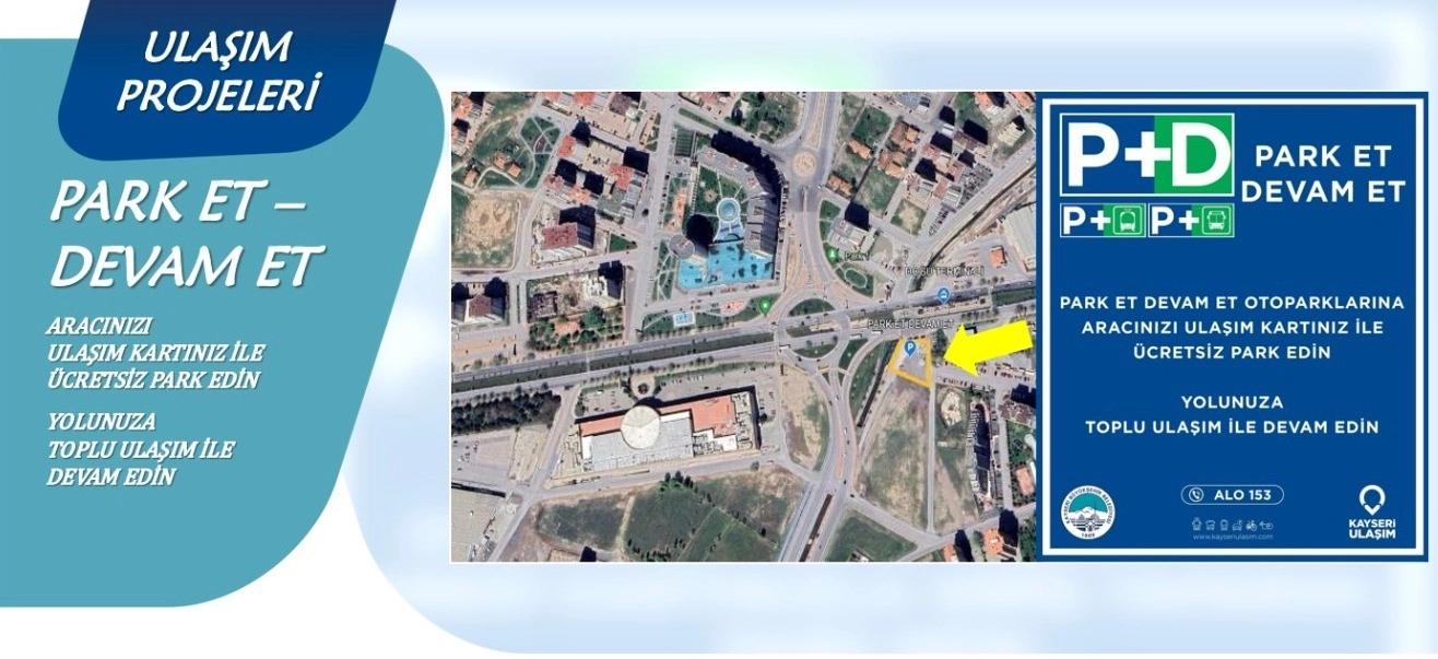 Kayseri Büyükşehir Belediyesi Ulaşım A.Ş., kent genelinde ulaşımın kalitesinin arttırılması, trafiğin rahatlatılması adına sürdürdüğü hizmetlerine devam ederken, 'Park Et-Devam Et' uygulaması ile hem trafiği rahatlatıyor hem de çevreci ulaşıma destek oluyor.