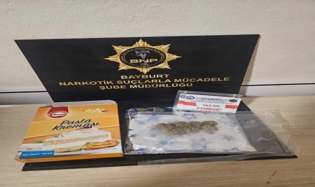 Bayburt'ta kargoyla gönderilen paketin içinde uyuşturucu ele geçirildi.
