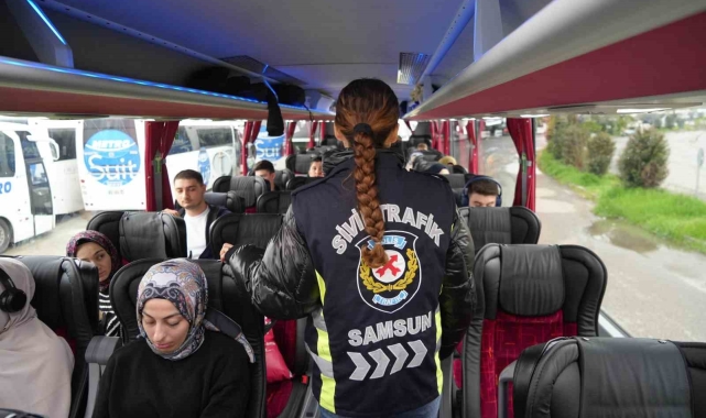 Samsun polisi, Ramazan Bayramı dönüşünde yoğun yolcu taşımacılığı yapan şehirlerarası otobüslerinde emniyet kemeri kontrolü uygulaması gerçekleştirdi.