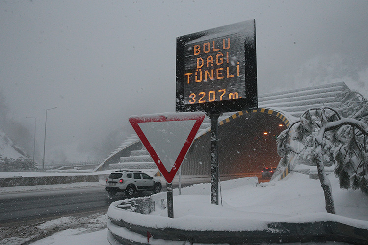 Kar yağışı, otoyolun Yumrukaya, Abant kavşağı, Bolu Dağı Tüneli ve viyadükler mevkisinde, D-100 kara yolunda ise Yumrukaya, Abant kavşağı, Elmalık, Bolu Dağı Polisevi, Bakacak ve Karanlıkdere kesimlerinde görülüyor.