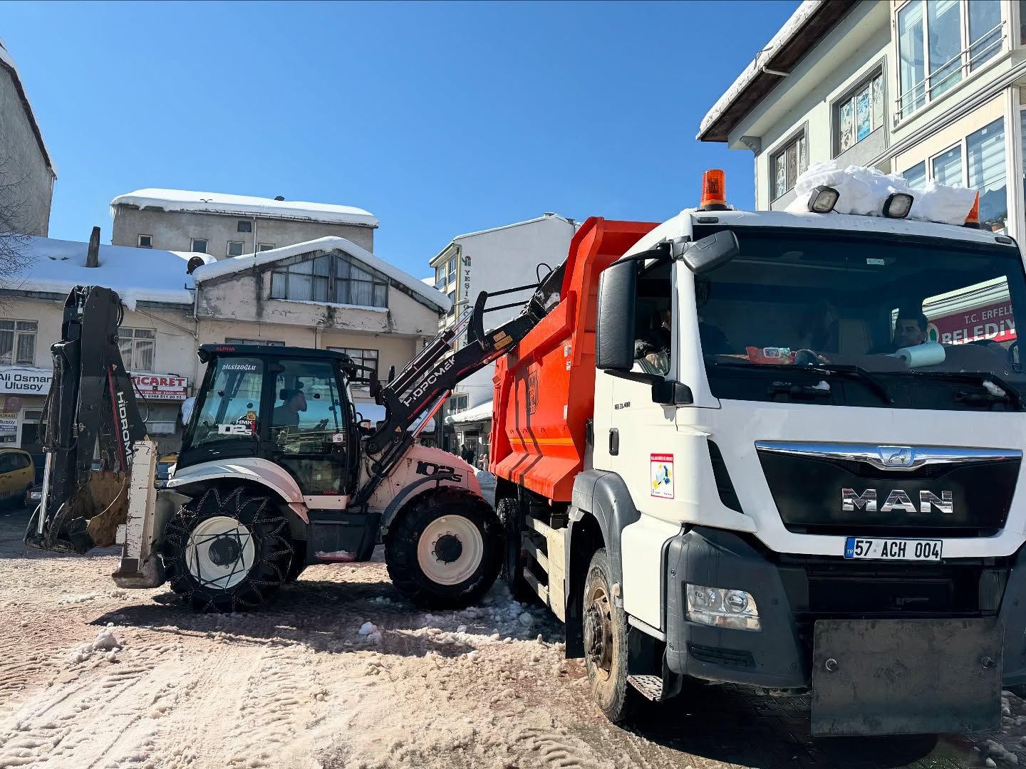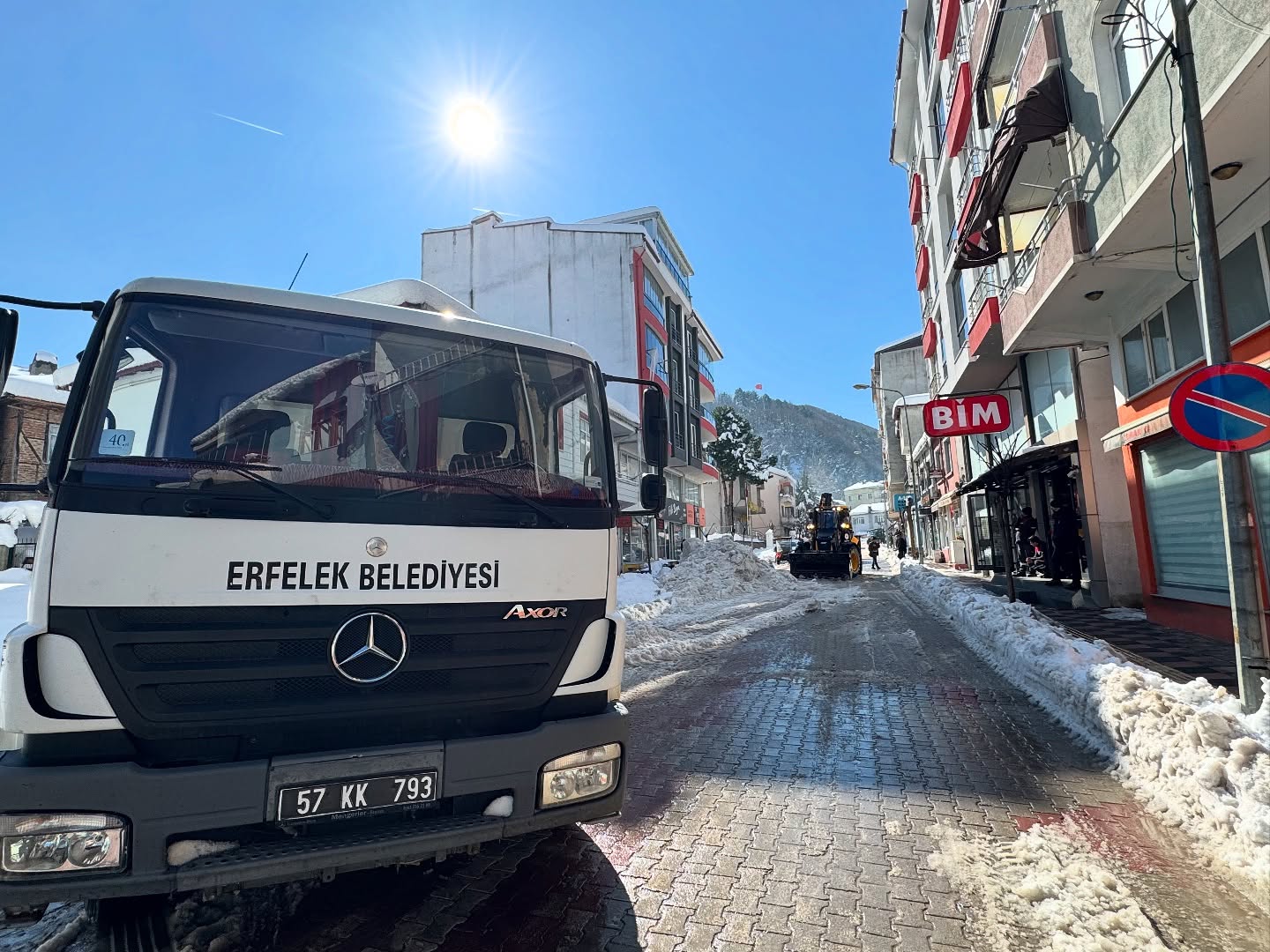 İlçede dün etkili olan yoğun kar yağışı nedeniyle vatandaşlar yolda yürümekte zorlanmış, araç sürücüleri ise trafikte güçlük çekmişti. Sinop Flash Haber olarak dün “Erfelek’te kar, hayatı durma noktasına getirdi” başlığıyla gündeme taşıdığımız durumun ardından belediye ekipleri harekete geçti.