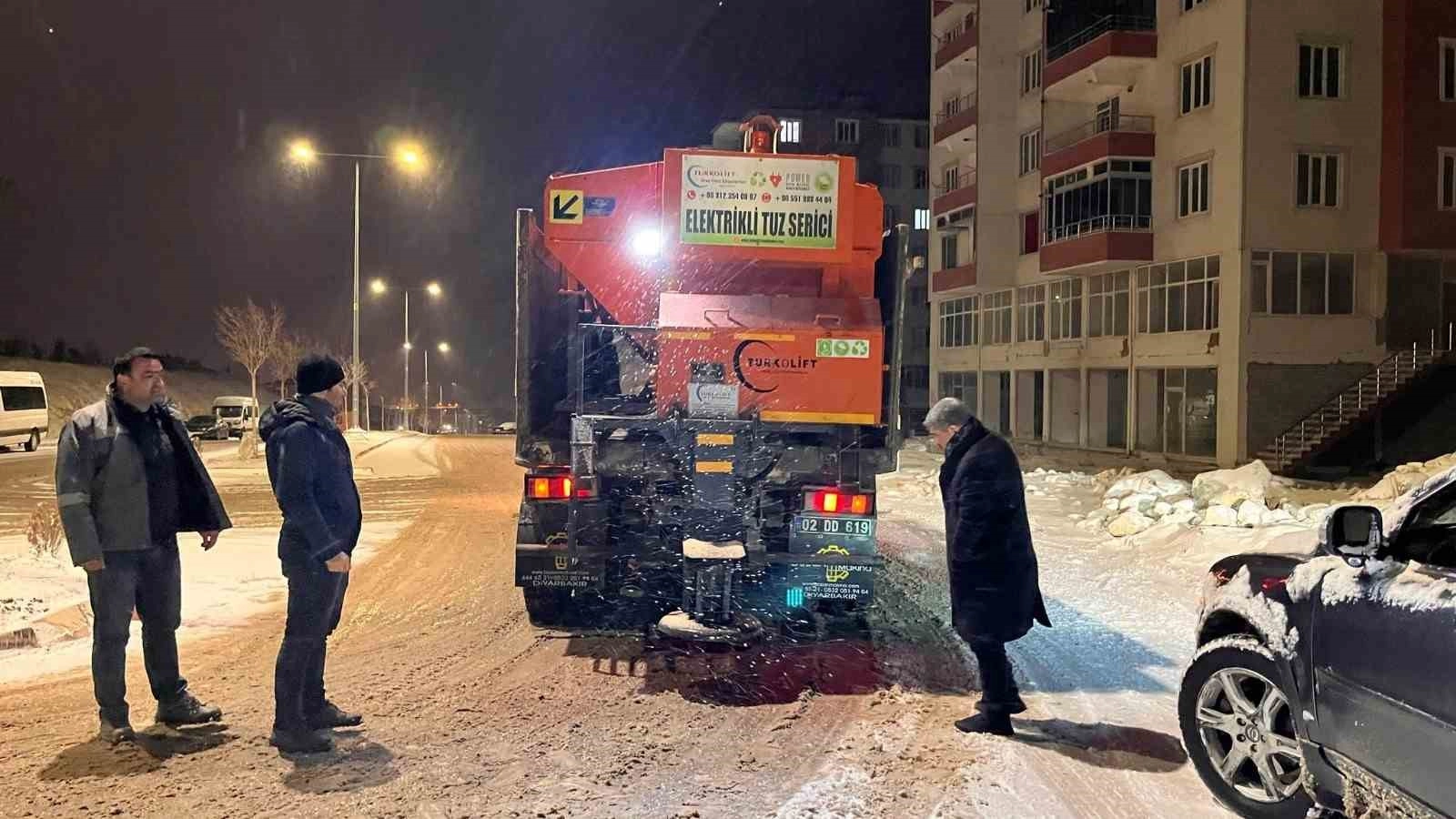 Besni ilçesinde özellikle Yenikent Bölgesi ve 15 Temmuz Mahallesi'nde ekipler, yolların açık kalması için kar küreme ve tuzlama çalışmalarına devam ediyor.