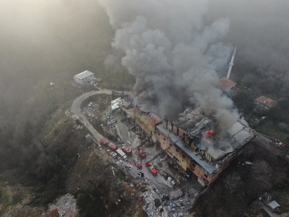 Beykoz'da 6 katlı fabrikada yangın çıktı. Kısa sürede büyüyen alevler tüm fabrikayı sardı. Çıkan yangında can kaybı ya da yaralanma yaşanmazken fabrika kullanılamaz hale geldi.