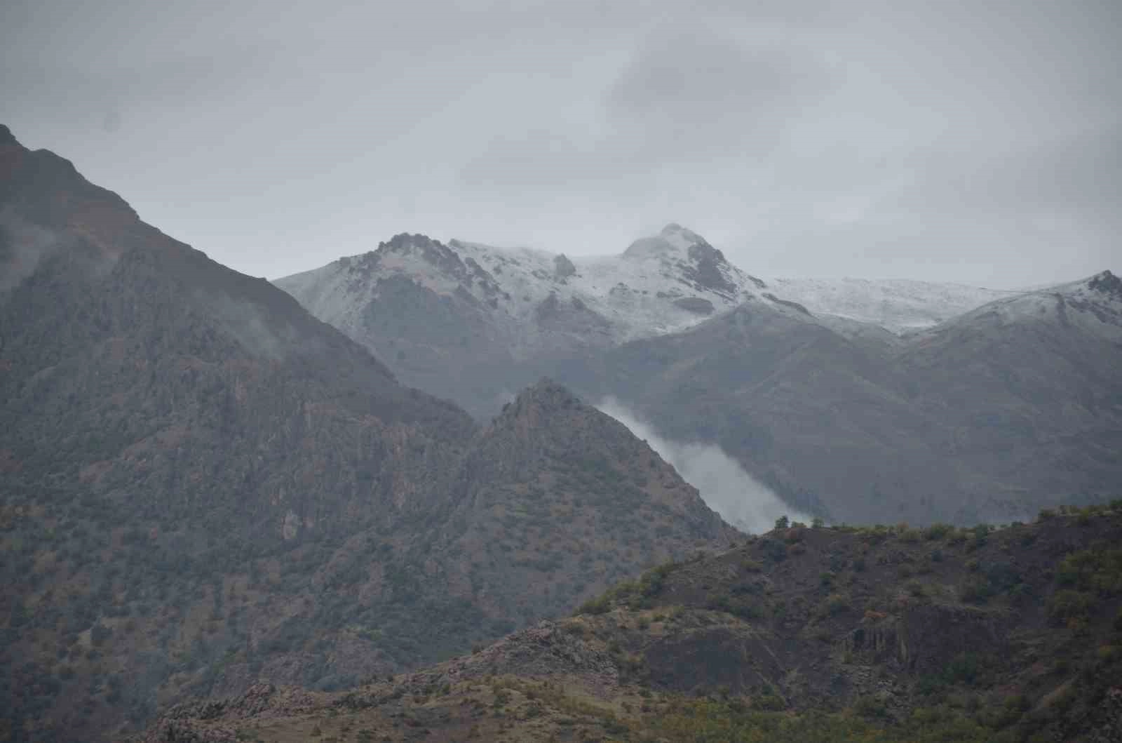 Şırnak'ın Beytüşşebap ilçesinde havaların soğumasıyla birlikte dağlar beyaza büründü.