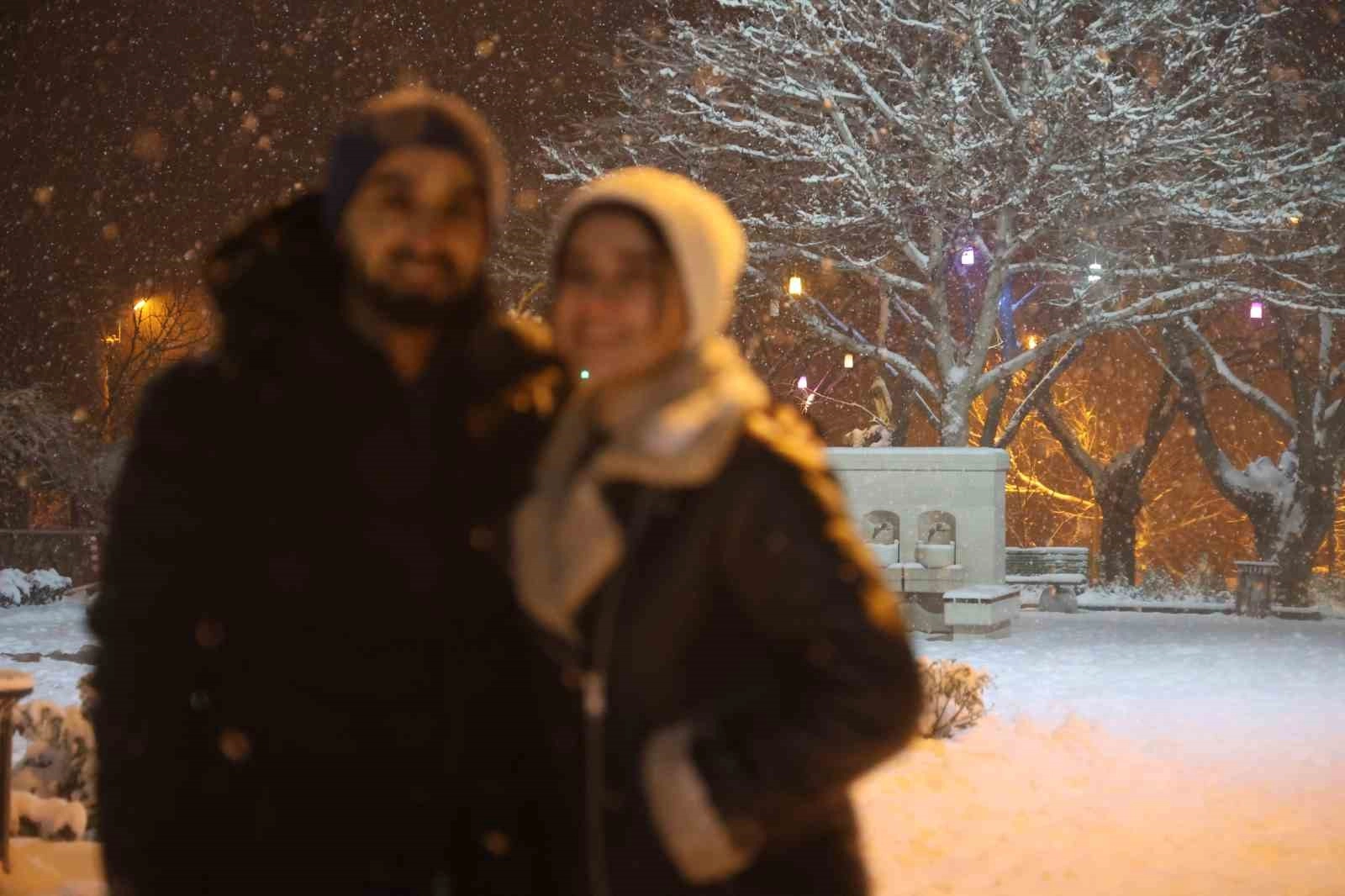 Van'dan geldiğini dile getiren vatandaşlardan Sinan Arslan ise, "Manzaranın keyfini çıkarıyoruz. Güzel bir kar yağışı var. İlk defa bu mahallede kar yağışına şahit oldum. Tarih ile manzara birleşince eşsiz bir hava oluştu. Biz de keyfini çıkarıyoruz" diye konuştu.