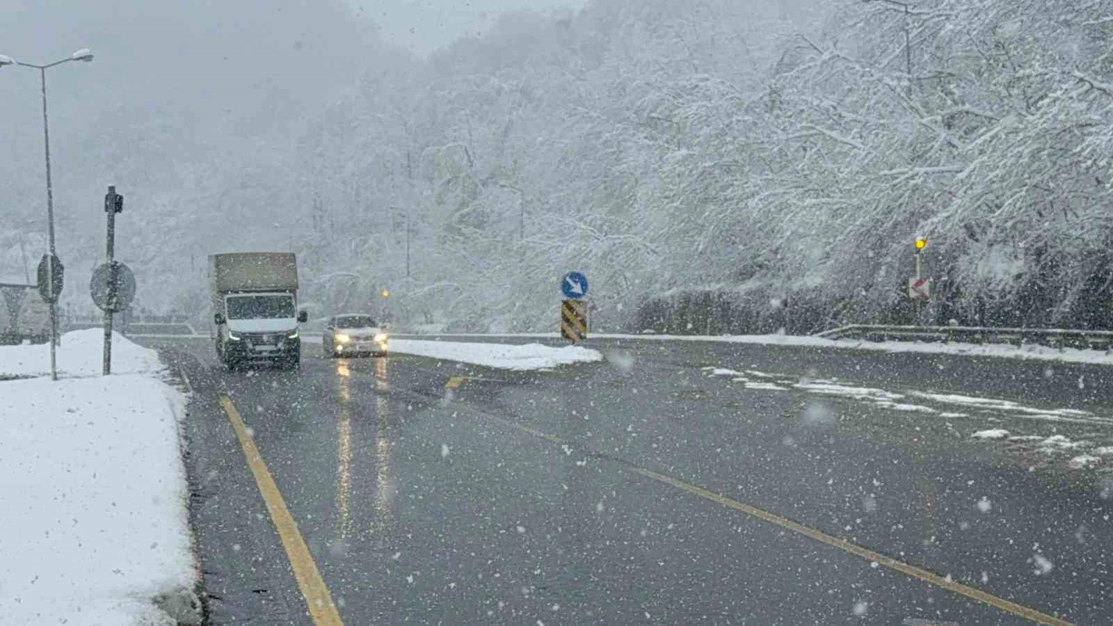Düzce'de bazı bölgelerde hem güneş hem kar yağışı etkili oluyor. Aralarında sadece 4 kilometre olan iki bölgenin birinde yoğun kar yağışı diğer bölgede ise güneş bölgeyi etkiliyor.