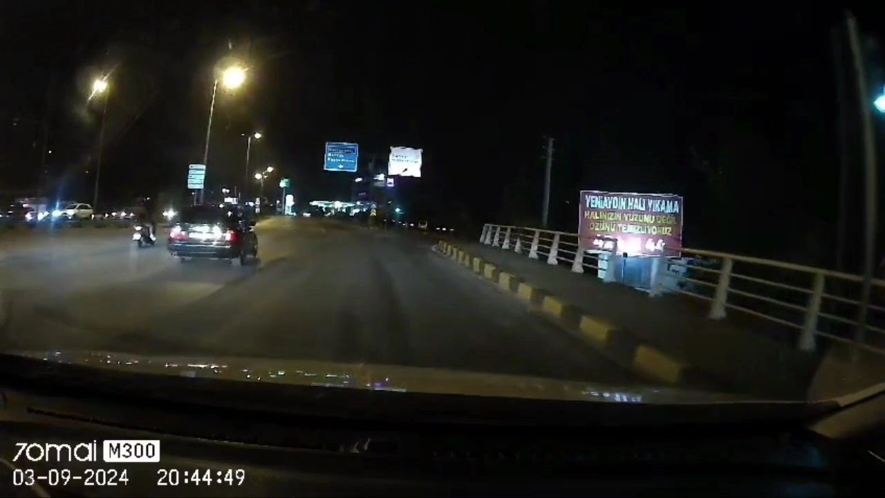 Karabük-Safranbolu kara yolu Sanayi Kavşağında mevkiinde sürücüsü ve plakası öğrenilemeyen bir otomobil, yeşil ışık yandıktan sonra zikzak çizerek yoluna devam etti. Sürücünün, motosiklette bulunan iki kişinin ve trafiği tehlikeye attığı anlar araç kamerasına yansıdı.
