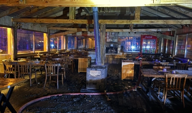 Tesis çalışanları, restoranı saran dumanı fark ederek yangın tüpüyle müdahale etmeye çalıştı ancak tesisin ahşap olması nedeniyle alevler çatı kısmına sıçradı.