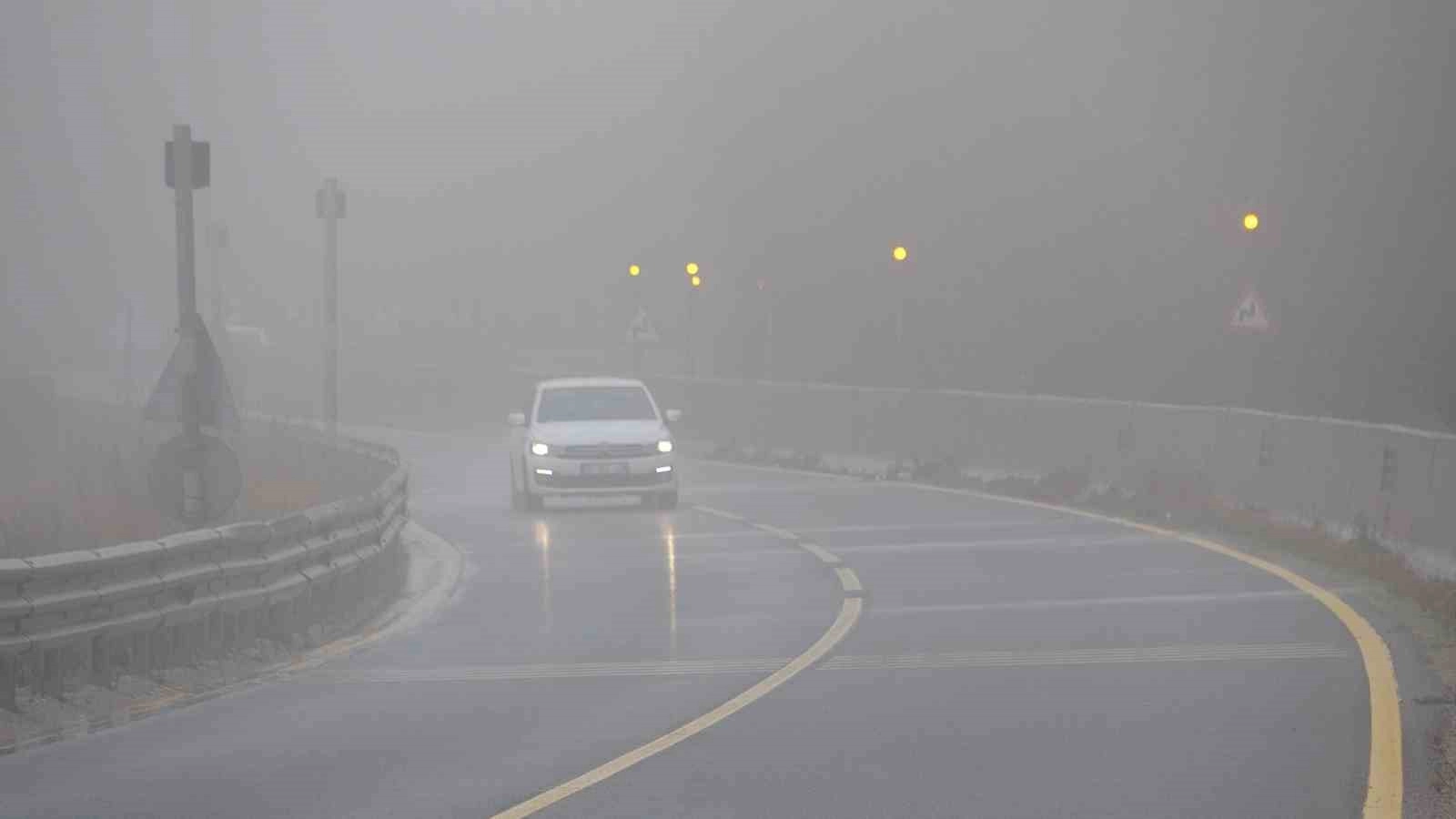 Bolu Dağı'nda etkili olan yağmur ve yoğun sis sebebiyle görüş mesafesi yer yer 30 metreye kadar düştü.