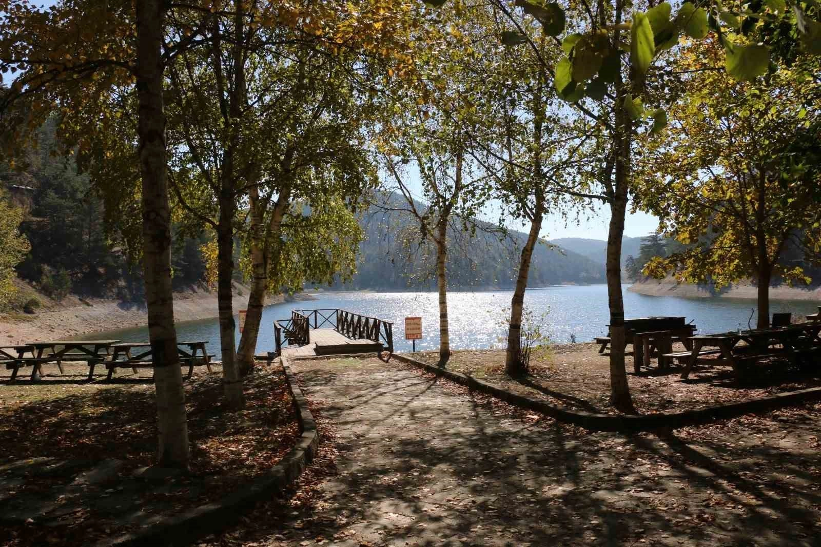 Türkiye'nin cennet şehirlerinden biri olan Bolu'da sonbahar güzelliği yaşanıyor. Sonbaharın güzelliğini yansıttığı Göynük ilçesinde bulunan Sünnet Gölü, ziyaretçilerini ağırlamaya devam ediyor. Etrafı ağaçlarla çevrili olan göl, doğal güzelliklerinin yanı sıra kuraklıkla mücadele ediyor. Yaklaşık 5 metre kıyılardan çekilen göl, Bolu tarihinin en büyük orman yangınında önemli rol oynamıştı. 3 gün süren yangında helikopter 775 ton su alarak 289 sorti yapmıştı.