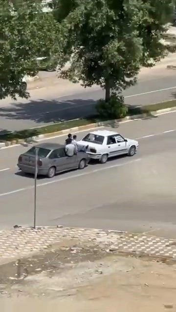 Olay, merkeze bağlı Ataşehir Mahallesi İmam Efendi Bulvarı'nda meydana geldi. Edinilen bilgiye göre, aracı bozulan bir vatandaş arkadaşlarını arayarak yardım talep etti. Arabası bozulan arkadaşının yanına gelen vatandaşlar, bozulan aracın arkasına diğer aracı yanaştırdıktan sonra kaputa oturarak itmeye başladı. Tehlikeli anlar bir vatandaşın cep telefonu kamerasına yansıdı.