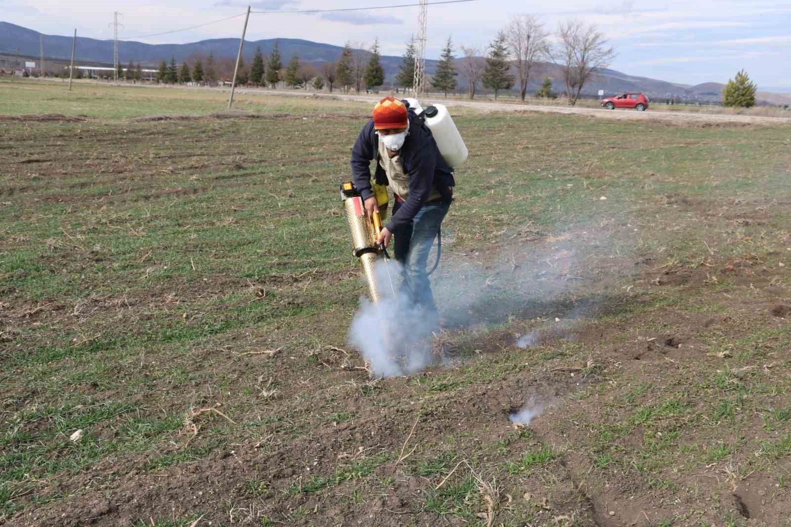 Afyonkarahisar'ın Sandıklı ilçesinde bir çok köy ve beldedeki tarım arazilerini fareler ve böcekler istila edince köylüler çareyi ilaçlama da buldu.