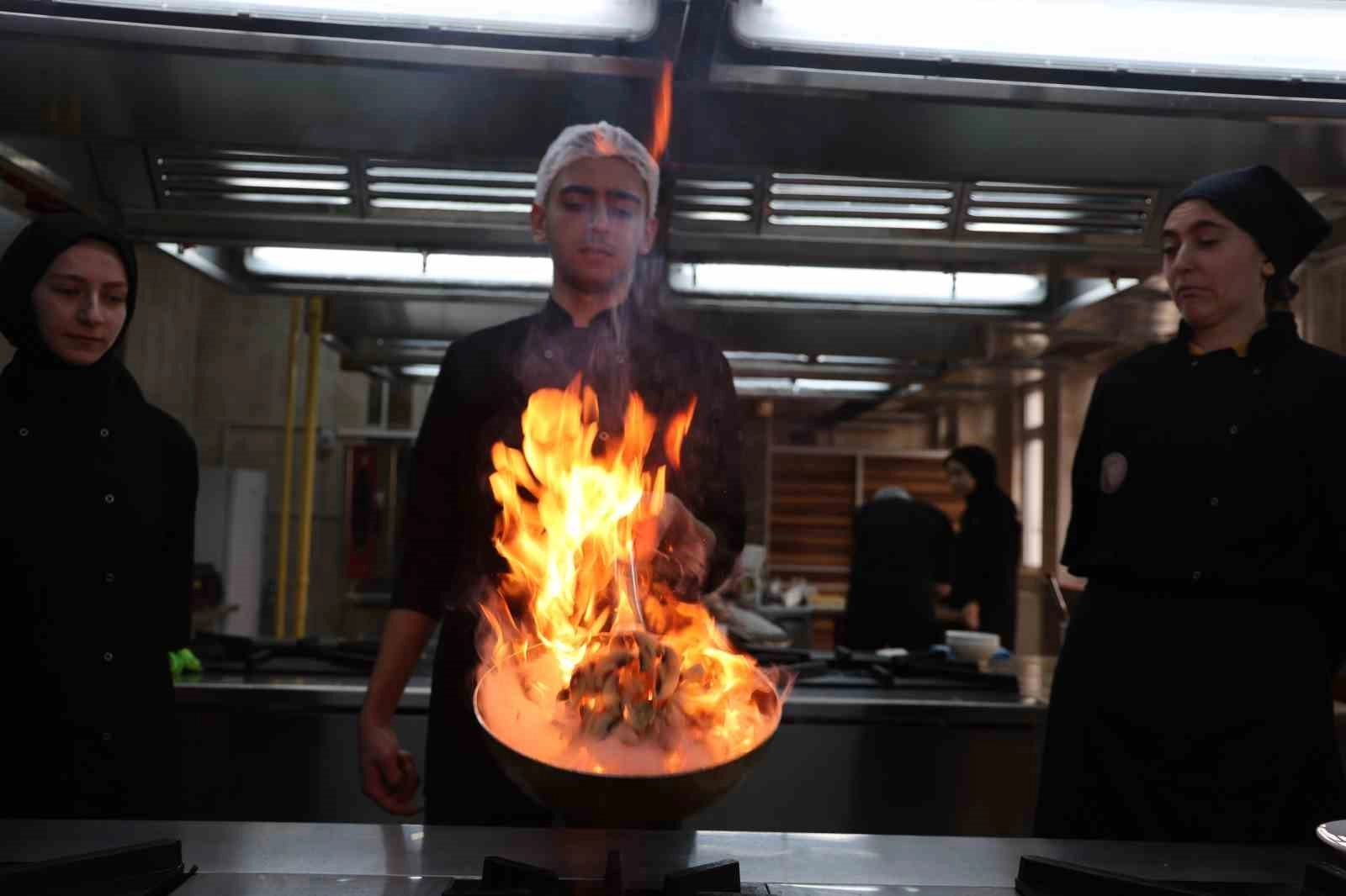 Öğrencilerden Sait Ortaç ise ''Donanımlı atölyelerimiz var. Atölyelerimizde alanımızla alakalı güzel eğitimler alıyoruz. Onun yanı sıra yurtdışı projelerimiz var. Alanımızla alakalı yine eğitimler alıyoruz. Dil derslerimiz var. Üç farklı yabancı dil öğrenmemiz için eğitimlerimizi alıyoruz. Hedefimiz ileride dünyada aranılan bir aşçı başı olmak" dedi.