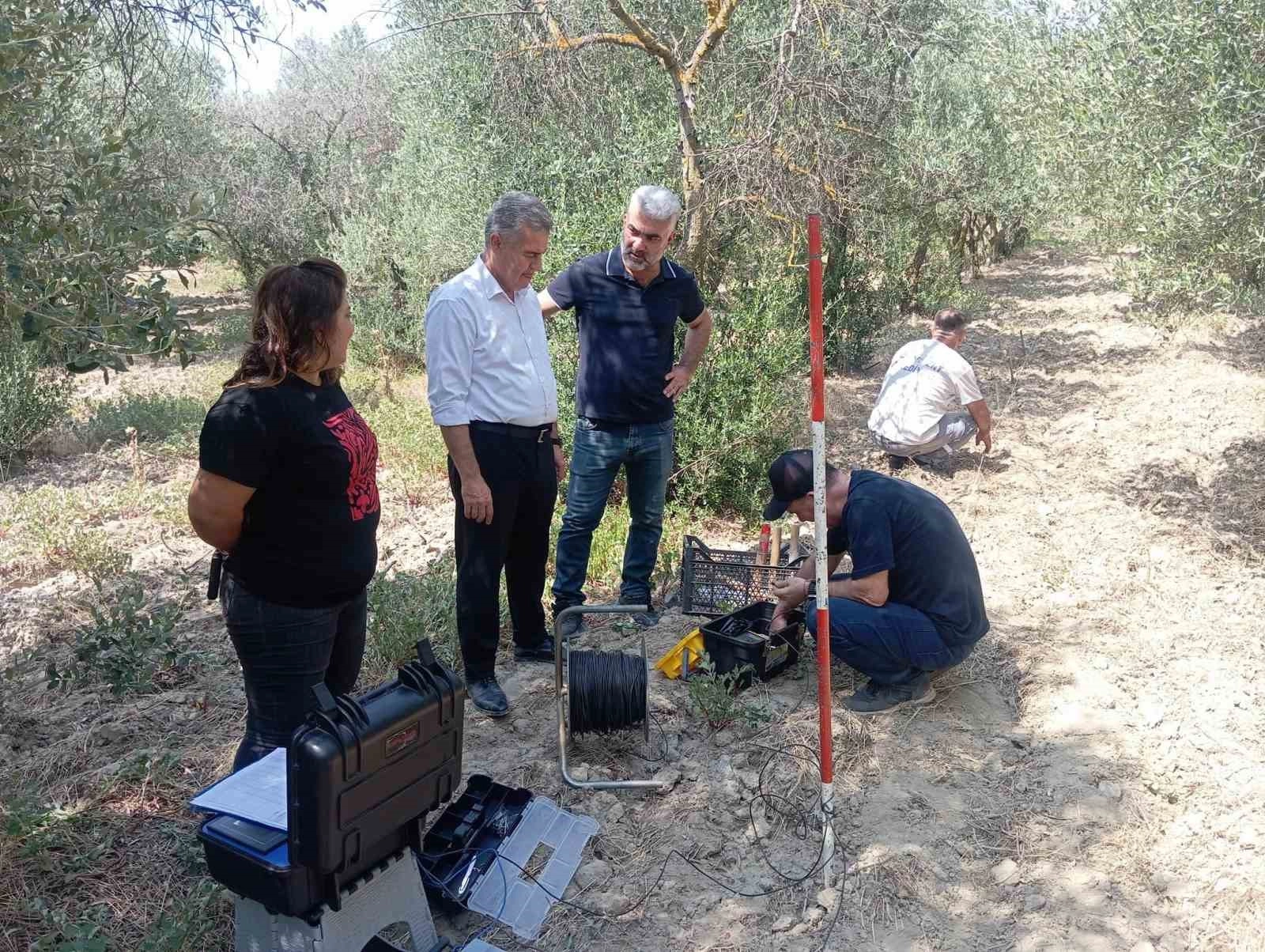 Aydın'ın Buharkent ilçesinde 12 ay boyunca çiftçilere sulama imkanı sağlaması hedefiyle yeraltı kuyularından beslenen kapalı devre damla sulama sistemi için çalışmalarına devam eden Buharkent Belediye Başkanı Mehmet Erol, yetkililerle birlikte Ortakçı Mahallesi'nde jeofizik çalışma gerçekleştirdi.