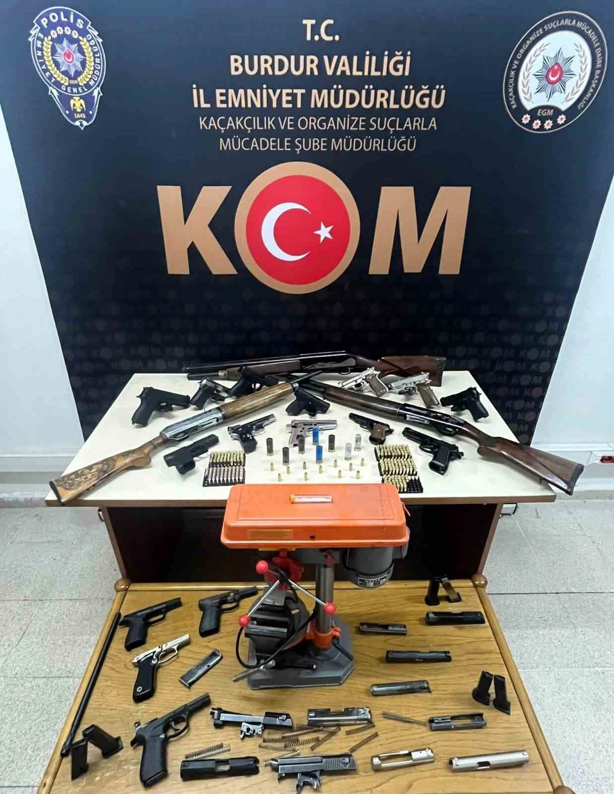 Burdur İl Emniyet Müdürlüğü ekipleri tarafından düzenlenen kaçakçılık operasyonunda çok sayıda silah ele geçirilirken 1 şahsa işlem yapıldı.