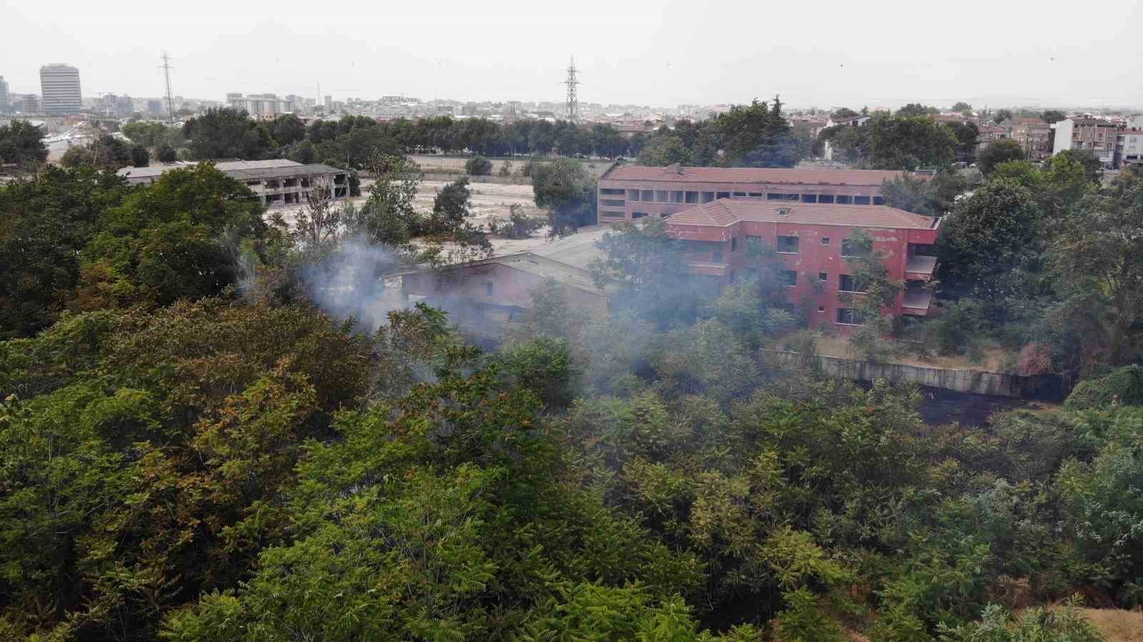 Yangın havadan görüntülenirken, olayla ilgili tahkikat sürüyor.