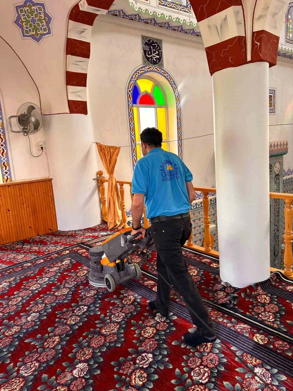 Gebze Belediyesi, vatandaşların bayramda hijyenik ortamda ibadetlerini yapabilmesi için camilerde temizlik çalışması yürütüyor.