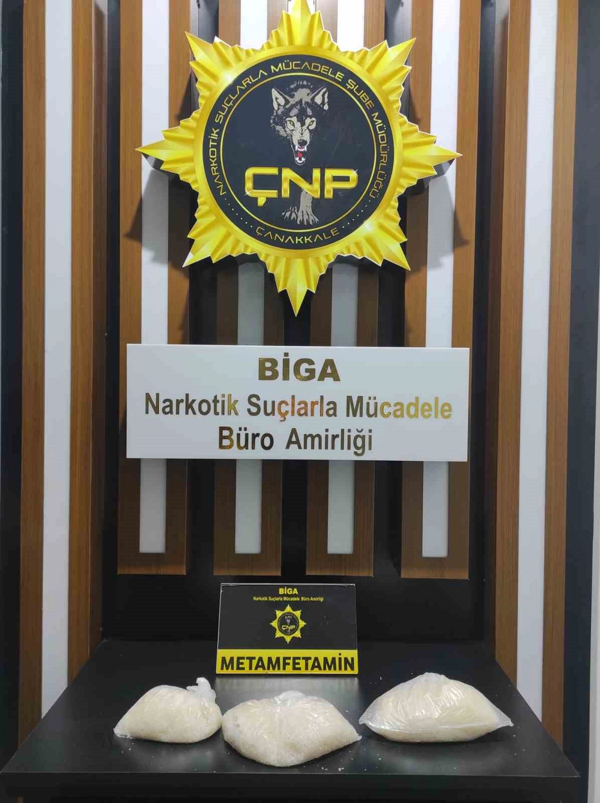 Çanakkale İl Emniyet Müdürlüğü Narkotik Suçlarla Mücadele Şube Müdürlüğü ve Bursa Narkotik Suçlarla Mücadele Şube Müdürlüğü ekipleri tarafından müştereken gerçekleştirilen operasyonda 3 şüpheli şahıstan piyasa değerinin yaklaşık olarak 2 milyon TL olduğu değerlendirilen 1 kilo 28 gram metamfetamin maddesi ele geçirildi. Yakalanan şüpheliler hakkında uyuşturucu madde ticareti yapmak suçundan işlem yapıldı. Gözaltına alınan 3 şüpheli çıkarıldıkları adli merciler tarafından tutuklandı.