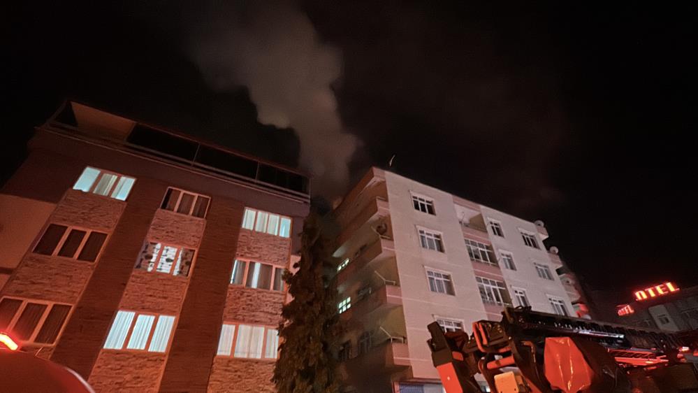 Samsun’da 4 katlı binanın çatı katı, çıkan yangında alevlere teslim oldu.