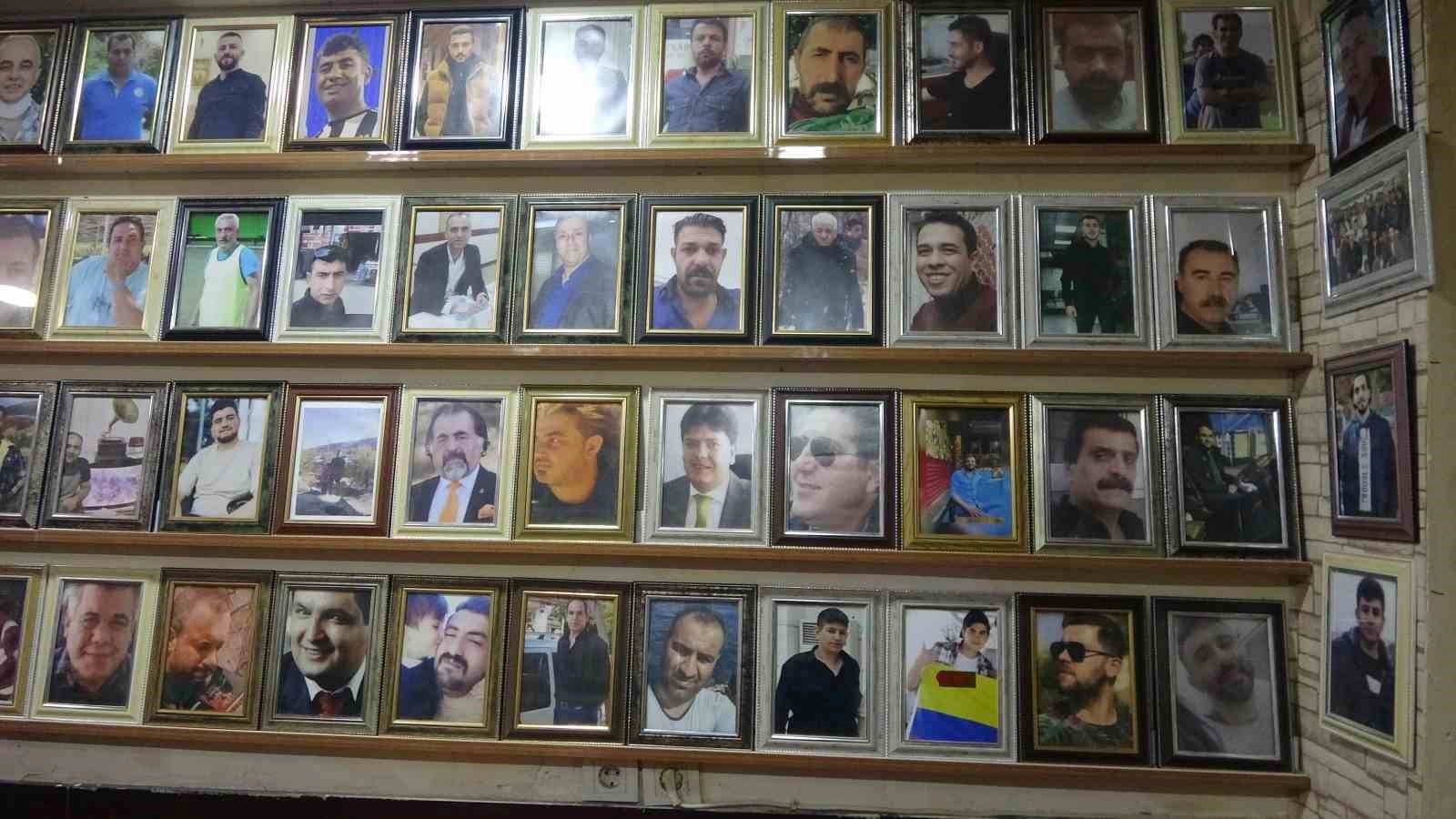Adıyaman'da bir çay ocağının duvarları, 'Deprem şehitlerinin' fotoğraflarıyla adeta albüme döndü.