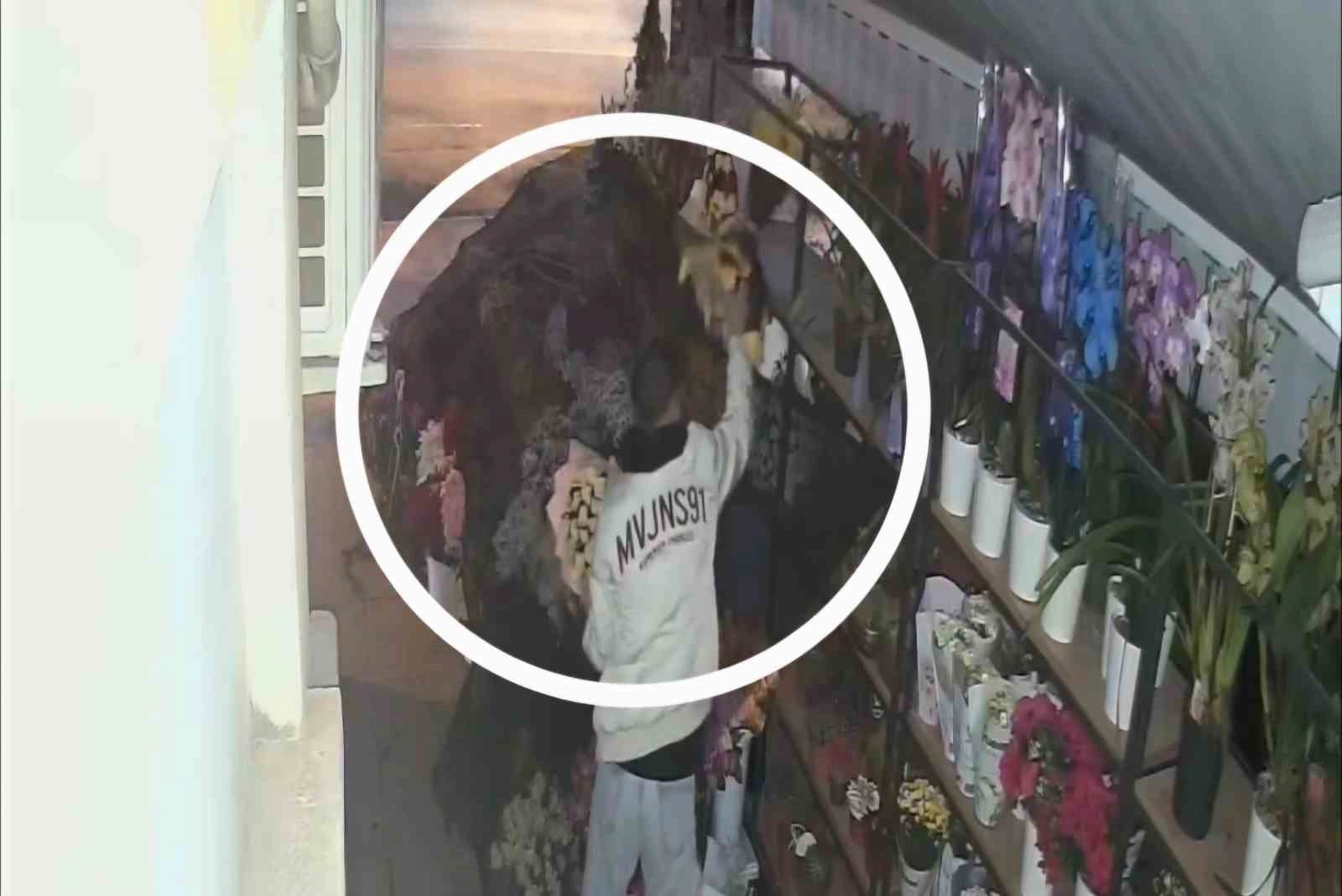 Samsun'da çiçekçiden 5 bin liralık çiçek çalan hırsız, güvenlik kamerası tarafından saniye saniye görüntülendi.