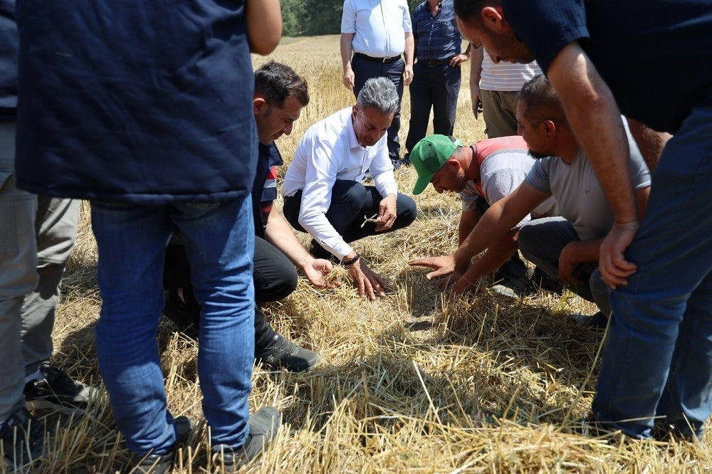 Bilecik İl Tarım ve Orman Müdürü Necmettin Yoldaş, Kurtköy'de çiftçilerle birlikte biçerdöver hasadına katıldı.