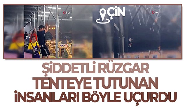 Çin’in Hubei eyaletine bağlı Yichang kentinde etkili olan şiddetli rüzgar nedeniyle bir restoranda insanlar tenteyle birlikte havalandı.