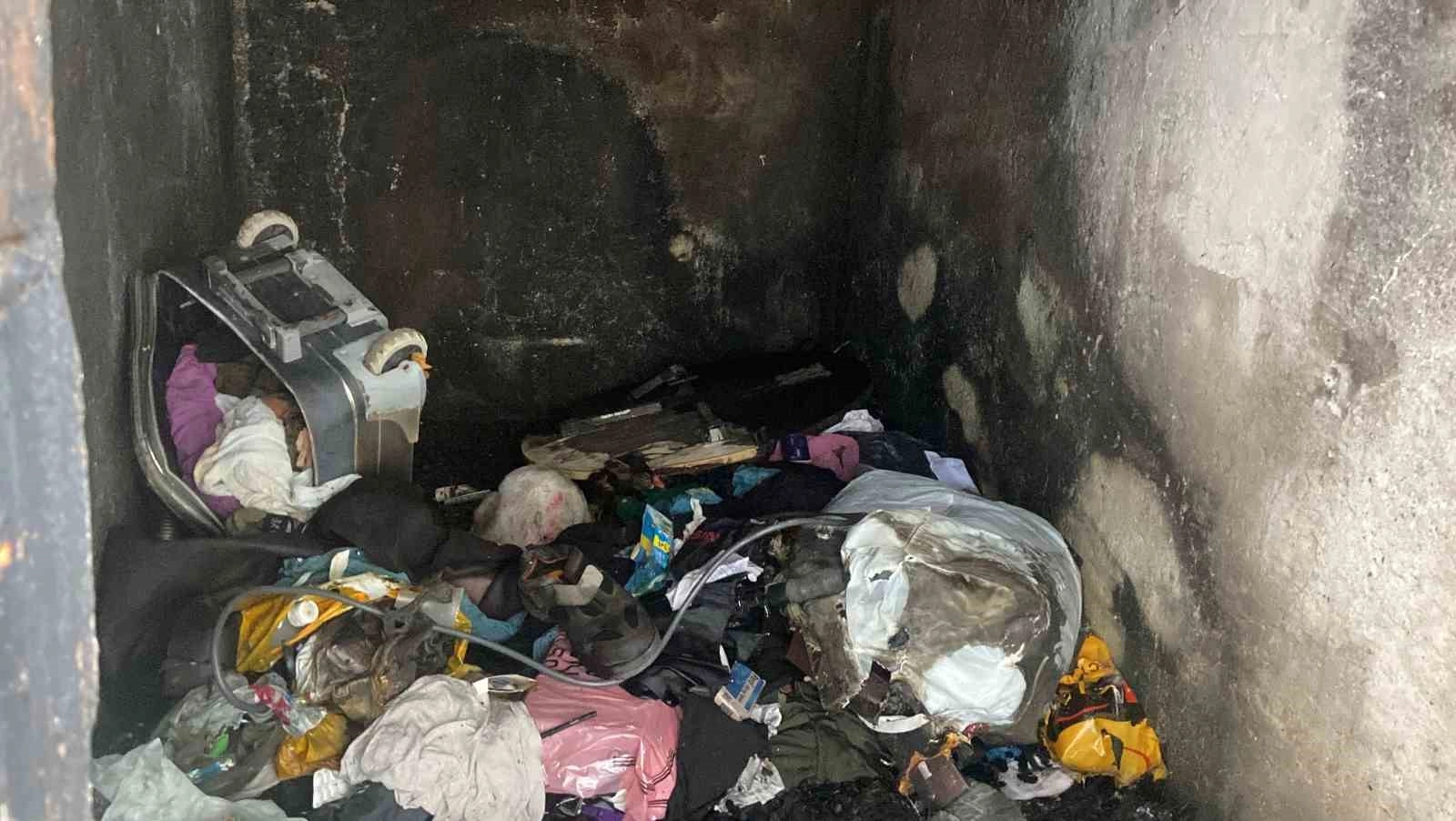Yangın sebebiyle kömürlükte hasar meydana geldi.