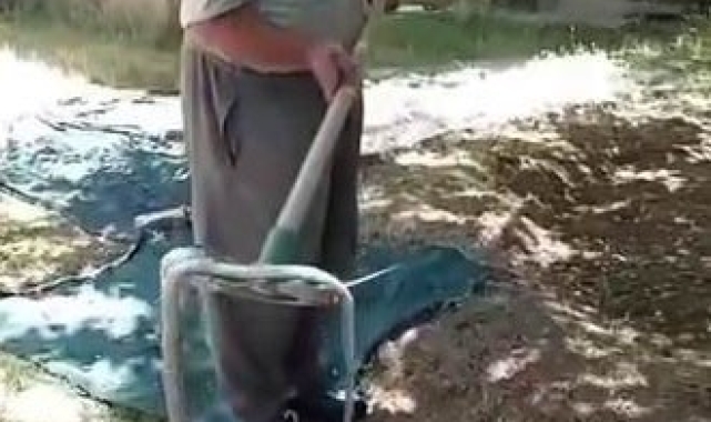 Telaşlanan Sürgeç, yanında bulunan kürekle yılanları etkisiz hale getirdi.