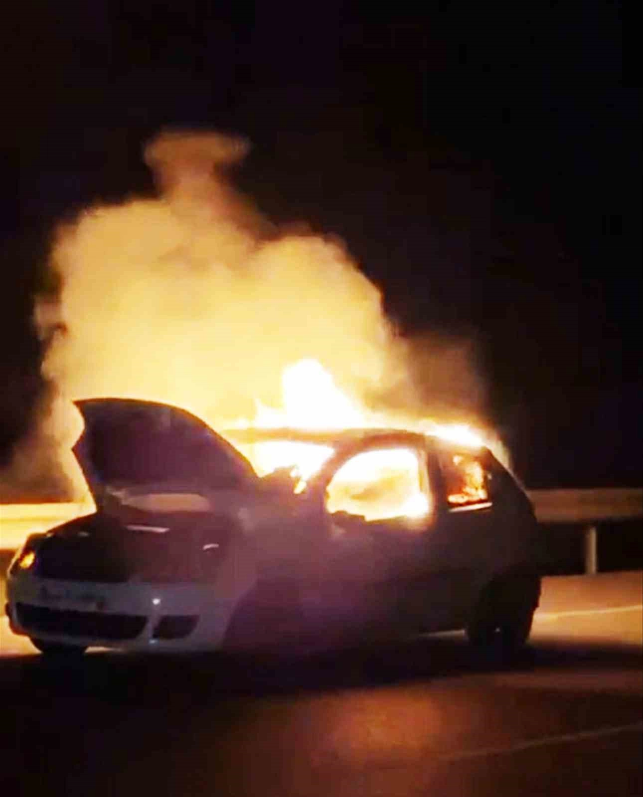 Marmaris Datça karayolu Balıkaşıran mevkiinde gece saatlerinde hareket halindeki araç yanarak kullanılmaz hale geldi. Araç içindeki vatandaşlar dumanı fark edince aracı terk etti.