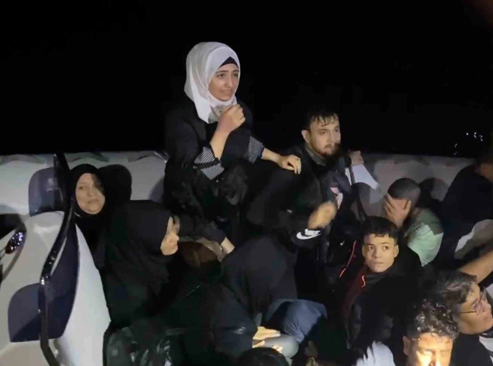 Datça ilçesi açıklarında görevli Sahil Güvenlik Botu tarafından tespit edilen hareketli fiber karinalı lastik bot durdurulmuş, içerisindeki 18 düzensiz göçmen (beraberinde 5 çocuk) yakalandı.