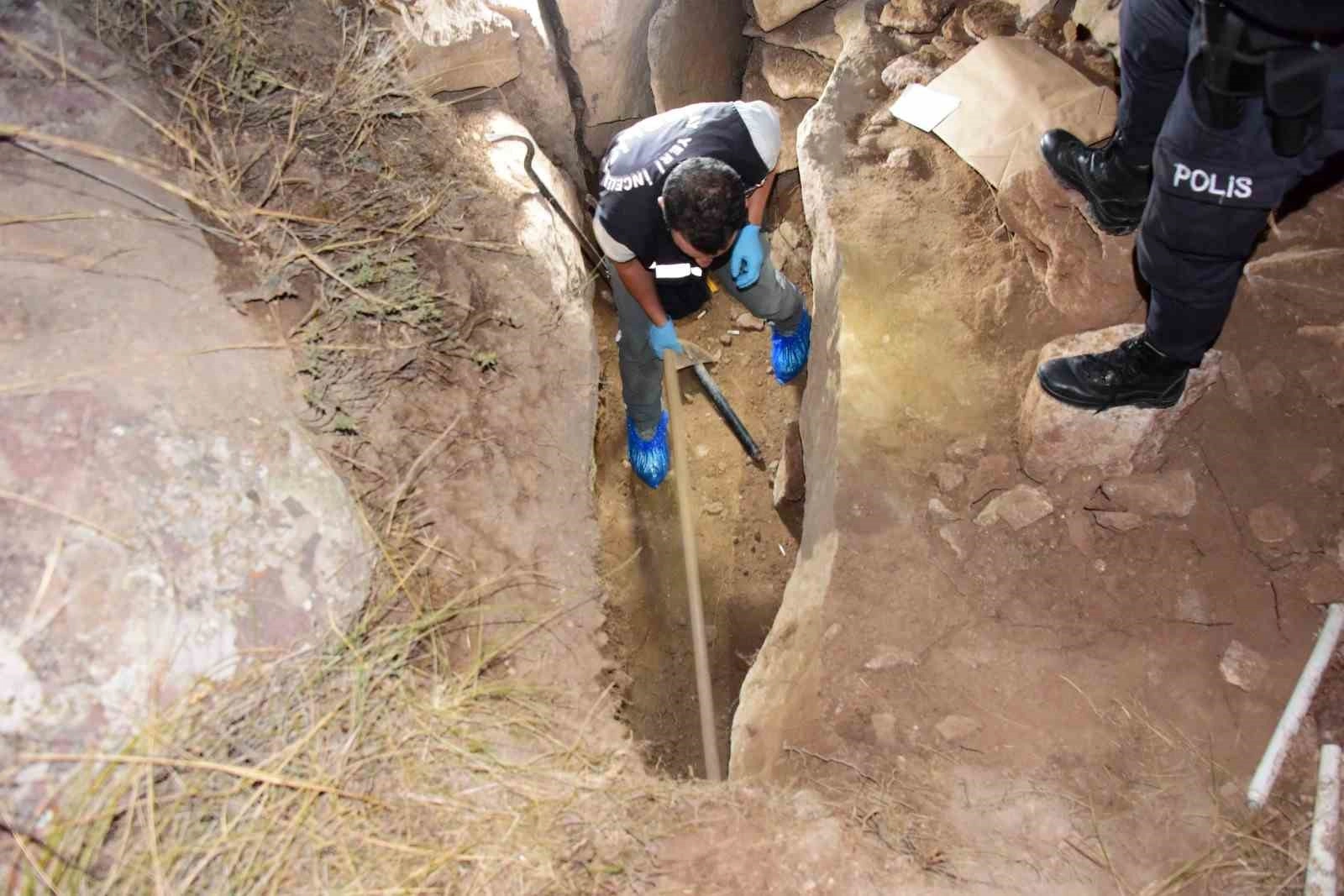 Kayseri'de kaçak kazı yapan defineciler polisin geldiğini görünce kaçarken; ekipler şahısların arkasında bıraktığı malzemelerden kriminal inceleme başlattı.