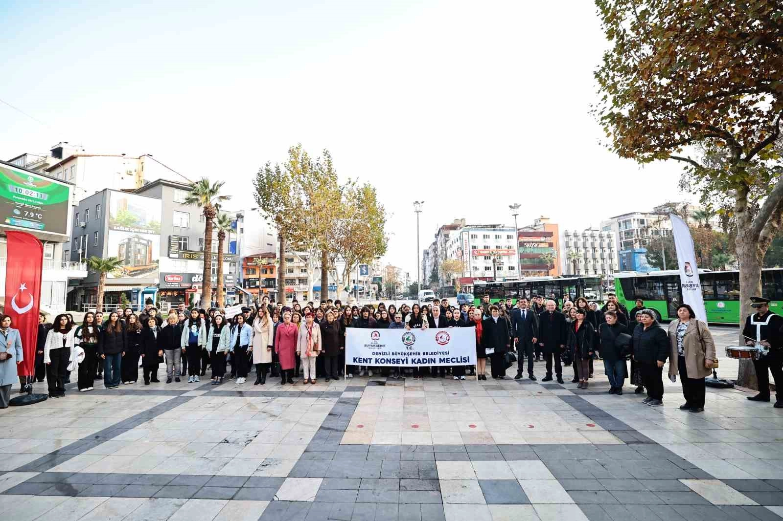 Delikliçınar Meydanı'ndaki Atatürk Anıtı önünde düzenlenen törene, Denizli Büyükşehir Belediye Başkanı Bülent Nuri Çavuşoğlu, Başkanvekili ve Kent Konseyi Başkanı Ali Marım, Kadın Meclisi Başkanı Meral Alten, Büyükşehir Belediyesi kadın çalışanları, davetliler ve öğrenciler katıldı.
