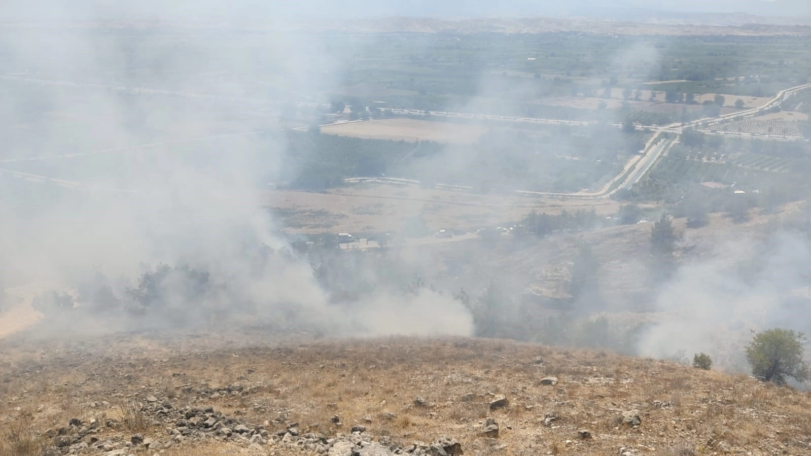 Denizli'de otluk ve ormanlık alanda yangın çıktı. Ekipler yangına havadan ve karadan müdahale ediyor.