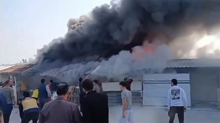 Hatay'da geçici yaşam merkezinde çıkan yangında 3 konteyner alevlere teslim oldu.