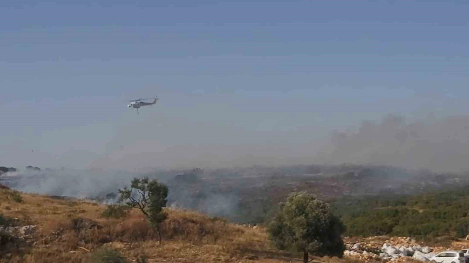 Aydın'ın Didim ilçesinde makilik alanda çıkan yangını söndürme çalışmaları devam ediyor.
