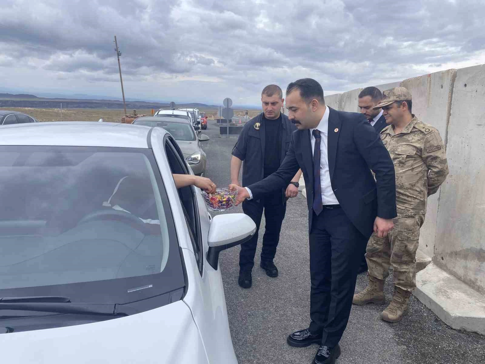 Digor Kaymakamı Hasan Musab Okatan, trafik uygulamasına katıldı. Jandarma ve sürücülerin Ramazan Bayramı'nı kutladı.