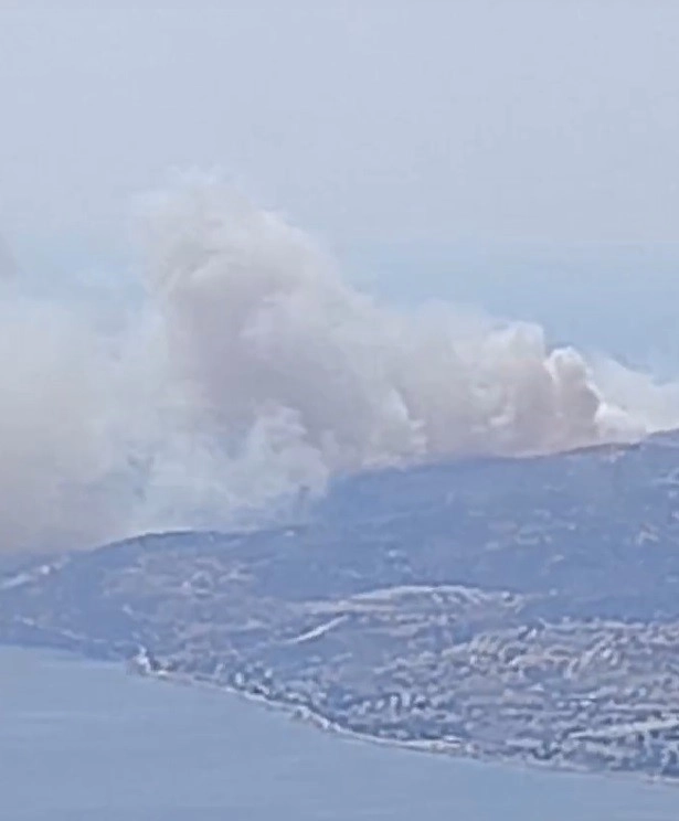 İzmir'in Dikili ilçesinde çıkan orman yangınına havadan ve karadan müdahale sürüyor.