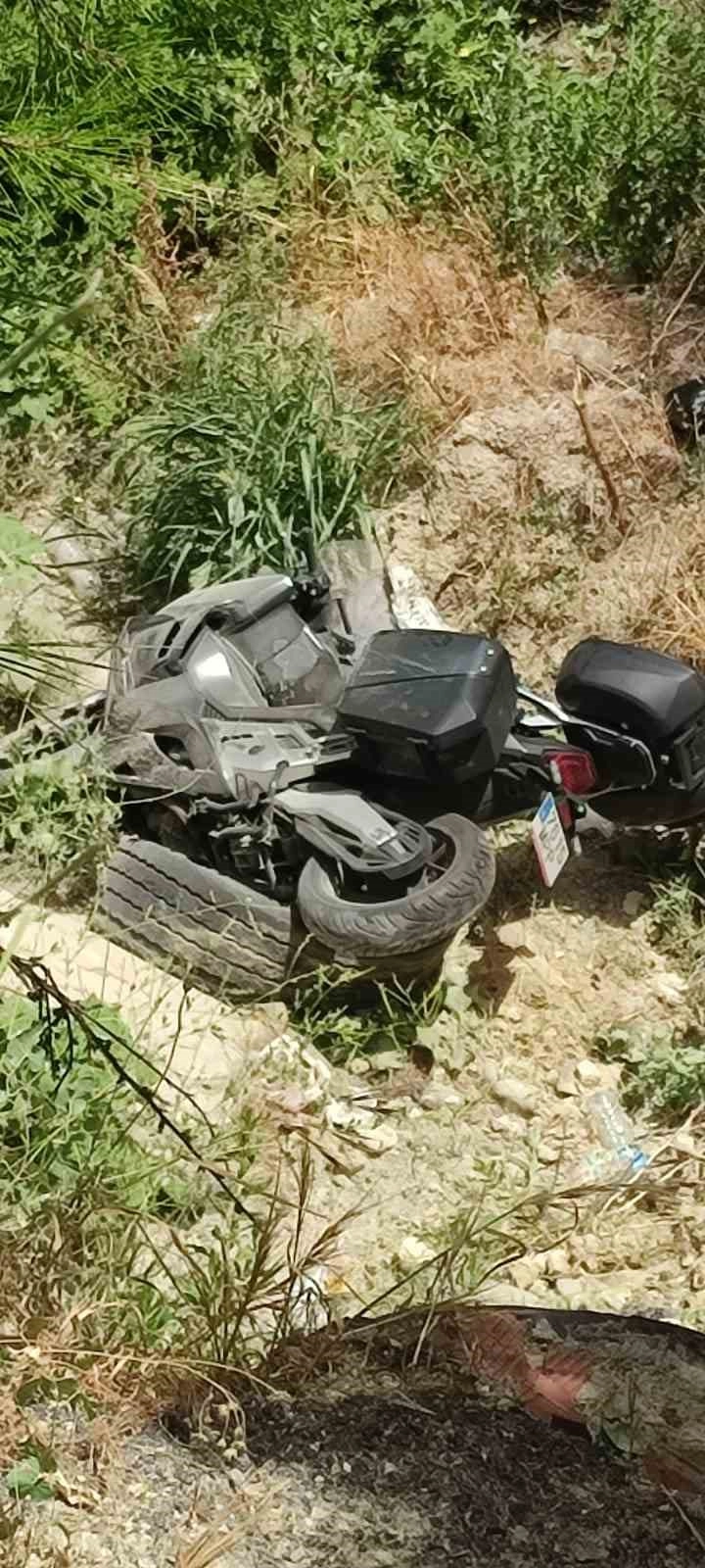 Denizli'de sürücüsünün direksiyon hakimiyetini kaybettiği motosiklet önce karşı şeritten gelen otomobile çarptı, ardından şarampole devrildi. Kazada motosiklet sürücüsü yaralandı.