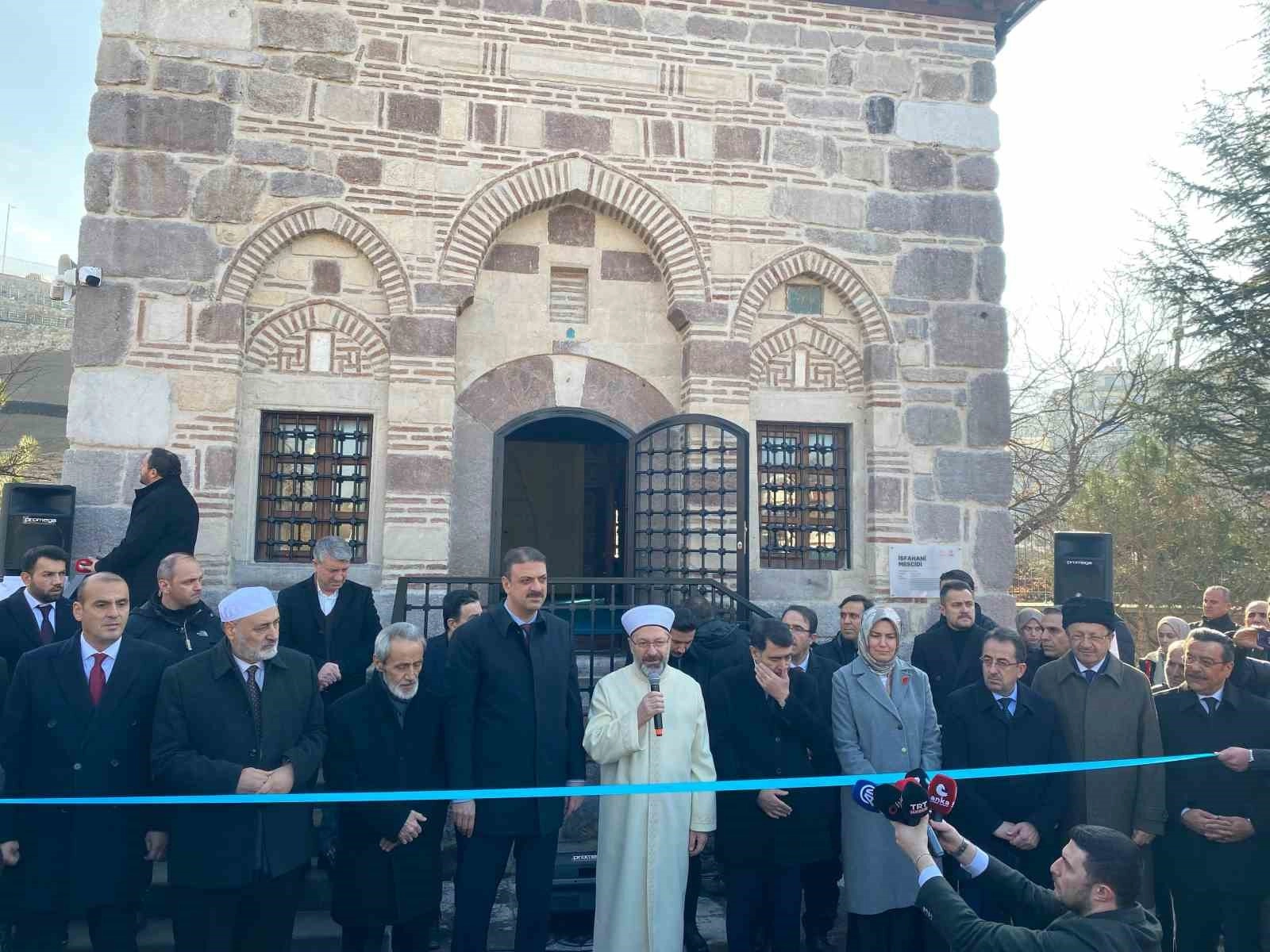 Diyanet İşleri Başkanı Ali Erbaş, Ankara'nın Ulus semtinde 45 yıldır kapalı olan ve onarılarak ibadete hazır hale getirilen İsfahani Mescidi'nin açılışını yaptı.