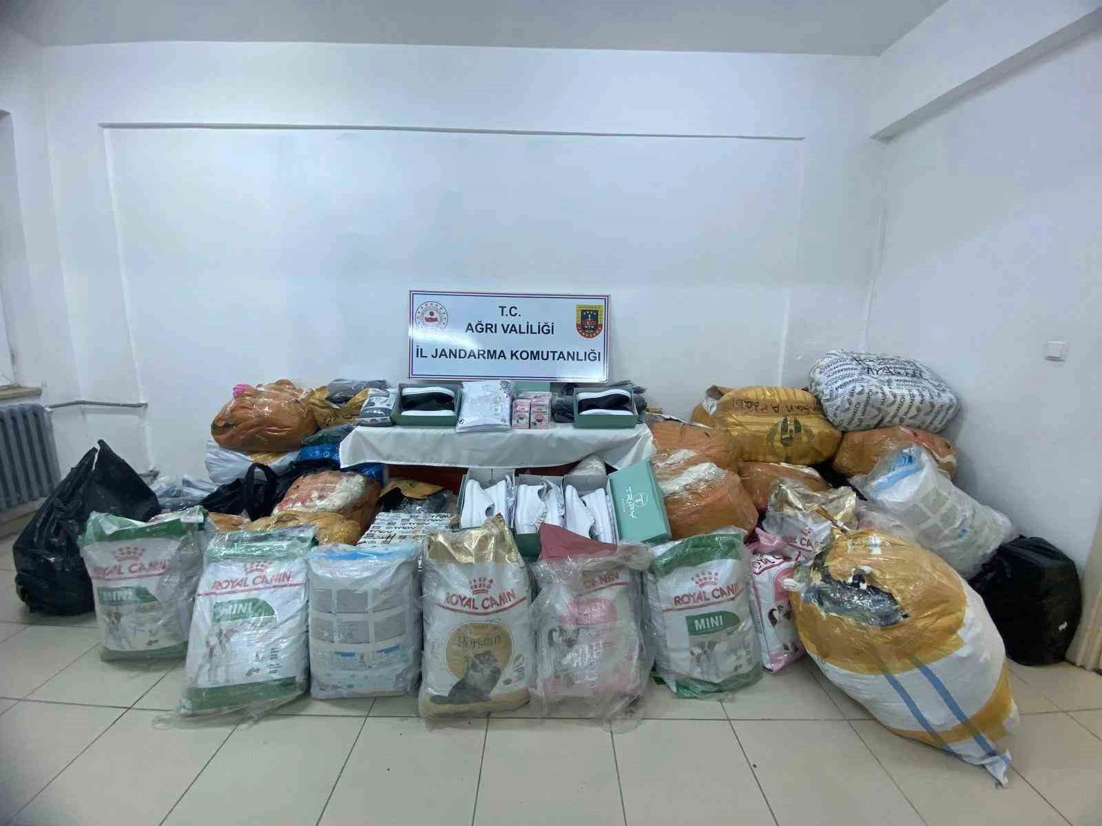 Ağrı Valiliğinden yapılan açıklamada, "İl Jandarma Komutanlığı ekiplerince Doğubayazıt ilçesinde, yol kontrol ve emniyeti uygulaması esnasında durdurulan bir araçta yapılan aramada, piyasa değeri yaklaşık 638 bin TL olan muhtelif markalarda gümrük kaçağı; 100 kilo kedi maması, 184 kilo köpek maması, 40 çift spor ayakkabı, 463 adet tişört, 263 adet gömlek, 209 adet elbise, 343 adet pantolon ve 86 adet ceket ele geçirilmiştir. 1 şüpheli gözaltına alınmıştır." ifadelerine yer verildi. Gözaltına alınan şüpheli hakkında adli soruşturma başlatıldı.
